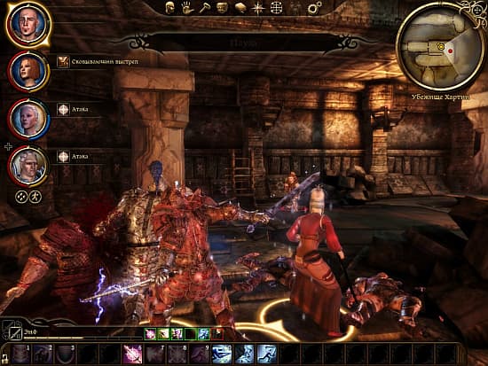 Пусть бы его, классический подход. Больше всего мешает полюбить Dragon Age именно боевая механика. Сражений тьма, и когда одна составляющая игры исполнена кое-как, сложно получить удовольствие от сыплющихся килограммов текста. На первый взгляд может показаться, что бои тут – суть калька с системы AD&D. Свободный подбор членов партии и гибкая прокачка позволяют создавать диковинных гибридов с воистину ядовитыми способностями. Можно было бы уже радоваться, но, во-первых, в местных сражениях нет такого понятия, как «ход» или «фаза», все действия проходят в реальном времени, заклинания можно бомбить без перерыва, и единственный ограничивающий фактор – это время «перезагрузки» спец-способности. Соответственно, приходится после каждой команды мгновенно шмякать на «паузу», чтобы контролировать поведение подчиненных, охочих на всевозможные глупости. Возможность задавать «тактики» немного помогает, но частенько оказываешься в ситуации анекдотичного хирурга с практикантами: «Сегодня у нас операция по ампутации правой ноги…. Я сказал правой!... Я сказал ноги!!!».