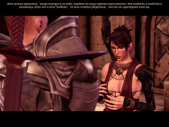 Но, короля делает свита, а героя Dragon Age – команда. 98% разговоров в игре выглядят так: впереди, расправив плечи (или выпятив грудь) стоит герой, перед ним собеседник, а сзади и с боков наши соратники, которые как раз не прочь поболтать и кинуть фразу, другую. Нам же остается просто выбирать варианты ответов. Так что полезность главгероя на этом празднике остроумия где-то между старой трибуной и манекеном с красивой, блестящей броней. Крайне похоже на игры 90-х, и совсем не напоминает Mass Effect.