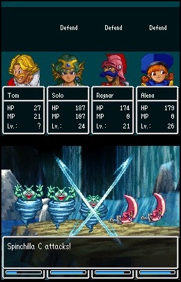Хотите простоты? Извольте потрудиться. Выползайте в чисто поле, наворачивайте круги днями и ночами, пока уровень персонажей не достигнет приемлемого минимума. Иначе придётся туго: боссы хоть и прямолинейны, но весьма злы, да и базовые монстры могут прилично напакостить команде. Тут уж как повезёт: или одинокий супостат выползет сражаться, или целый десяток собратьев набежит. К счастью, назойливая прокачка - не самый страшный бич Dragon Quest 4. Её можно отдать на откуп авто-команд, которые легко освободят игрока от милитаристической обузы. К тому же, при охоте вне подземелий опыт получает вся партия целиком, а не только четыре основных бойца – очень удобно.