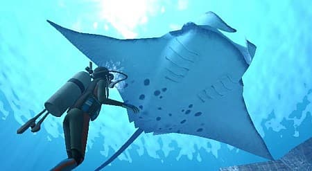 Это на поверхности все предметы угловаты, зеленая палитра пестрит квадратами пикселей, а собственные движения и акробатические этюды воспитанников выглядят немного деревянными. Под водой все по-другому. Гарцуют и кружатся дельфины, носятся стайки больших и малых коралловых рыбок, чарующе и величаво «парят» скаты, акулы сонно патрулируют свои владения, пингвины сходят с ума в азарте охоты, а киты и касатки одним своим монументальным видом внушают трепетное благоговение. Чешуя переливается всеми цветами радуги, под кожей крупных хищников упруго перекатываются мышцы. Техническое несовершенство платформы заметно лишь по количеству одновременно присутствующих в кадре декораций и обитателей моря. Все твари миролюбивы и спокойны, каждую можно и нужно почесать и погладить, чтобы познакомится. Для пущего эффекта и природного разнообразия в тихоокеанский бассейн запустили представителей Атлантики и обитателей Индийского океана.