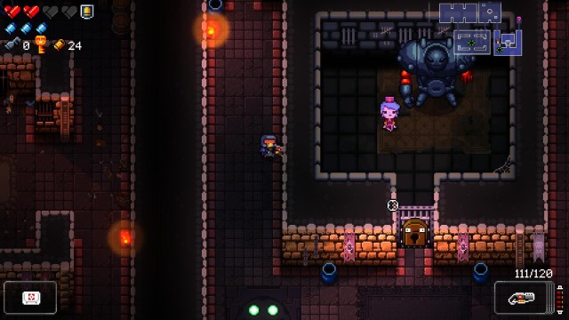 Ранения являются результатом опрометчивых поступков героя, потери контроля над ситуацией из-за собственной невнимательности или банальной расслабленности. Удобное и отзывчивое управление, отсутствие проблем с камерой и мастерски выстроенные арены не позволяют обвинить в проблемах посторонние факторы. В Enter the Gungeon подземелье перестраивается с каждым последующим заходом, но комнаты разработчики делали вручную. Меняется лишь их количество и последовательность.