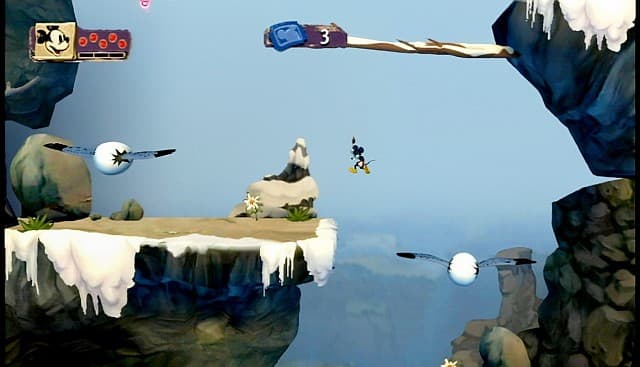 Умираешь постоянно по независящим от тебя причинам. Падаешь в лужу кислоты, разбиваешься в лепешку о землю, теряешь ориентир и слепо бежишь прямо в пасть врагам. Материшься, вздыхаешь, возрождаешься... И внезапно оказывается, что контрольные точки тоже расставлял человек с садистским чувством юмора. Добро пожаловать к началу уровня. Проходите все-все-все заново, включая вредные для здоровья поиски секретов и опасные для жизни переключения рубильников, чтобы открылась дверь на следующую локацию. Оно бы ладно. Можно стиснуть зубы, вогнать под ногти пару щепок, убедить себя, что могло быть хуже, если бы сама игра была толковая. Если бы в ней был хороший сюжет, веселые герои, лихие миссии, впечатляющие боссы и разнообразные враги. Хоть что-нибудь, хоть какая-то зацепка. Но этого нет. Ничего из вышеперечисленного.Наш Микки очень ограничен в своих возможностях. Он умеет прыгать - это вся акробатика. Он умеет круговым ударом ломать сундучки и отбрасывать от себя агрессивных монстриков. Но главное - у него есть волшебная кисточка с двумя красками. Синяя (созидательная) превращает врагов в друзей и дарит плоть призракам предметов. Зеленая (разрушительная) служит оружием, испепеляет зубастые кляксы и «стирает» некоторые объекты. Никакого развития героя в процессе приключения не происходит, повышается только объем носимой краски да появляется пара бонусов, с помощью которых можно отвлечь неприятелей или замедлить время.