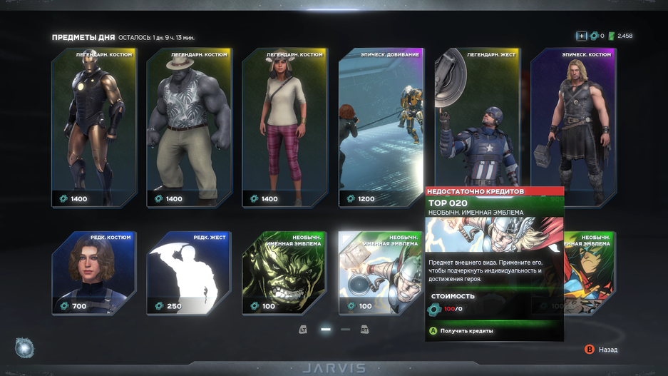Как во всех донатных помойках, тут есть встроенный магазин: продажа бесполезных эмоций, портретов и костюмов за реальные деньги. Бесполезные они, потому что базовые костюмы гораздо интереснее тех шутовских нарядов, какие нарисовали для знаменитых супергероев художники. И конечно, каждому из представленных шести героев прикладывается бесплатный Боевой пропуск! Выполняем ежедневные и еженедельные испытания, получаем всё те же эмоции и костюмы. Торопыги могут приобретать уровни Боевого пропуска за реальные деньги.