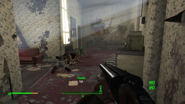 Оружие смотрится солидно, тела неприятелей разлетаются на куски, от стрельбы получаешь удовольствие. Присутствует и система V.A.T.S. При ее активации время замедляется и можно выстрелить в какую-нибудь часть тела противника. Правда, в Fallout 4 эта система стала лишь подспорьем. Уничтожать всех в режиме классического шутера от первого лица куда веселее.