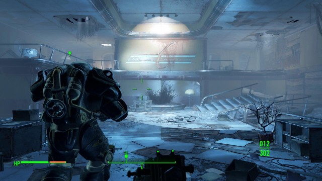 Выглядит Fallout 4 недурно. Картинка не обделена яркими красками. Поселения, собранные из подручных материалов, останки развитой цивилизации, окутанные туманом леса и полуразрушенные научные комплексы балуют нестандартными решениями в оформлении. Система освещения работает избирательно и периодически будто отключается, но в небольших помещениях чувствуешь себя неуютно за счет потрясающей игры тени и света. И все бы замечательно, но при не самой технологичной картинке частота кадров нестабильна на всех платформах. На консолях это особенно заметно. Все более-менее крупные локации отделены от внешнего мира загрузками. Загрузки небыстрые, что вызывает недоумение.
