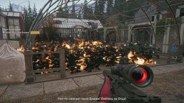 Исследование мира радует и раздражает. Отметки не материализуются на карте после посещения вышек. Про последние вспоминаешь нечасто, сказывается наличие авиации, так что можно сорваться с места и полететь, куда глаза глядят, в надежде отыскать аванпост, дополнительное испытание на время, тайник или логово зверя. Количество открытий не кружит голову, но награды оказываются весьма кстати. Увы, путешествию мешает перенаселённость округа сектантами. Постоянно натыкаешься на патрули. Часто проще телепортироваться в другую точку, тем более это можно сделать во время боя, чтобы избавиться от назойливых преследователей.