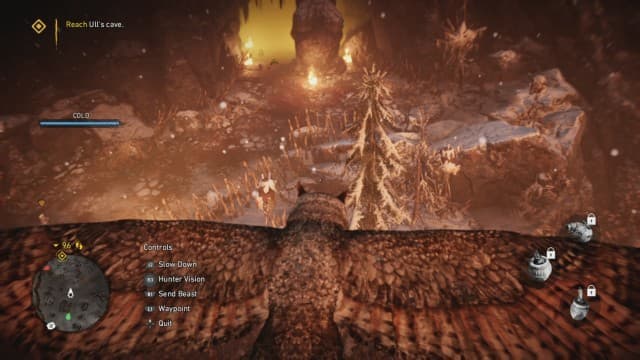 Огорчает и то, что значительная часть основных миссий сводится к зачистке территории от врагов или устранению неугодных в пещерах. В последнем случае герою запрещают использовать ручную сову. Эта версия разведывательного дрона парит над головами противников, отмечает их на мини-карте, убивает патрульных, пикируя с высоты, а после соответствующих модернизаций — сбрасывает бомбы. Неплохое подспорье. Жаль, но со временем вызов совы становится обязательным и не самым веселым ритуалом.