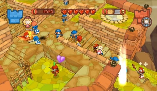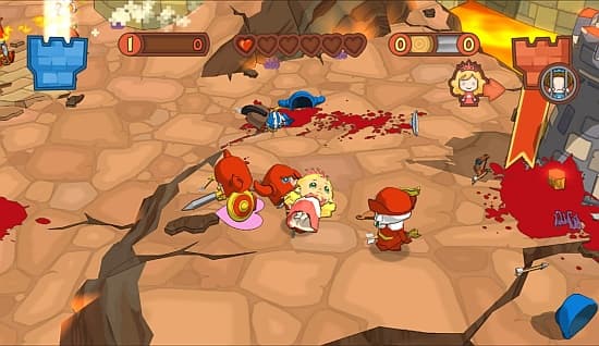 А вот мультиплеер – это то, ради чего игра создавалась. Четыре режима, среди которых можно найти захват контрольных точек, ординарное мочилово «команда на команду» и самое вкусное – две местные вариации Capture the Flag: «Спасение принцессы», где надо вызволять собственную жиртрессу из плена, и «Захват и грабеж», где надо выкрасть с трона вражескую любительницу сладких тортиков и бросить ее в темницу собственного замка. Задача сильно осложняется тем, что принцесса (поначалу, миниатюрная куколка) жрет все, что ей подносят, и толстеет при этом! А раскормленный до размеров бегемота «флажок» одному не унести, нужен отряд!Играется это все до одури весело, чему во многом способствует замечательный визуальный стиль, анимация человечков и актерская работа (кои-то веки русские превзошли по экспрессии западных коллег). Каждая карта предлагает множество путей для штурма вражеского замка – от входа через сломанные парадные ворота, до экзотической возможности построить гигантскую катапульту, чтобы одним махом забросить в опочивальню к принцессе внушительный отряд.