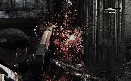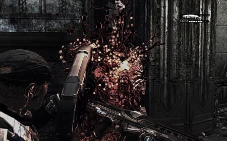 Отродья Саранчи честно отслеживают маневры Маркуса и компании, постоянно двигаются, перебегают от одного укрытия к другому, давят огнем и идут в атаку. Их поведение разнится в зависимости от того, какое оружие они сжимают в руках. Парни с дробовиками стремятся подобраться поближе, чтобы одним выстрелом снести голову презренному человечишке. Коллеги с автоматами держатся на средней дистанции, но также не прочь подойти и двинуть прикладом. Элитные воины со снайперским оружием или арбалетом бегают вдали, постоянно отступают. Вблизи же они становятся легкой добычей - готовый завтрак для прожорливой бензопилы. Для этой волшебной бензопилы, которую гений разработчиков прикрутил к автомату. Не приходится даже переключаться. Как только враг оказывается неподалеку, достаточно ее взвести, подойти вплотную и позволить яростно орущему Маркусу расчленить врага. Кровь хлещет потоком, заливает экран, стекает по нему каплями. Мгновение, и на землю падет две половинки, демонстрируя влажные внутренности. Самая беспощадная бензопила, которая когда-либо была в видеоиграх. Пальчики оближешь. Какой там DOOM 3…