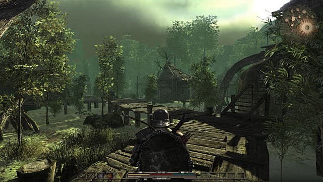 Такой подход можно даже простить, если бы разработчики сохранили свободу и нелинейность прежних игр сериала. Но про такую роскошь придётся забыть. Теперь нельзя присоединиться к одной из враждующих фракций, самому пытаться найти подходы к решению проблем или заниматься ерундой, просто исследуя огромный мир и собирая цветочки. В Gothic 4 за редкими и не оказывающими особого влияния на глобальные события исключениями всё донельзя примитивно. Такие красивые термины как «нелинейность» и «многовариантность» были признанны разработчиками бесполезными, и в продолжении не засветились. Сам герой ограничен областью, в которой его так или иначе заставляют посетить значимые руины, пещеры, другие достопримечательности. Неудивительно, что вся работа сводится к истреблению живности, облюбовавшей окрестности. Это касается как основных миссий, так и побочных. К слову, среди немногочисленных необязательных дел встречаются только два типа: убить X штук гоблинов (жуков, волков) или собрать Y штук грибов (корешков, паутинок). Все они выполняются по ходу дела. В связи с тем, что большую часть своего путешествия герой занимается зачисткой территории от врагов, авторы попытались доработать боевую систему. Безуспешно.При использовании холодного оружия наконец-то появился захват цели, перекаты, комбинации ударов. Неплохие задумки, призванные добавить огонька в сражения, не смогли привнести ярких красок в общую серость. Понять, кто и кого бьёт в игре, не так-то просто. Вменяемой анимации при размахивании оружием не завезли, враги лишь едва заметно дёргаются. Звуки ударов плохо различимы и напоминают шлепок мухобойкой по мягкому ковру. Даже сели вы отпрыгнули от дубины, а система уже просчитала попадание, то герой всё равно получит по лбу. И не важно, что он находится далеко вне зоны досягаемости.