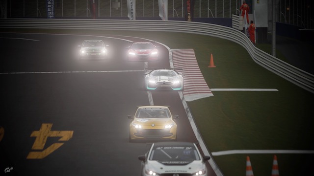 Gran Turismo Sport, увы, не стала очередным бенчмарком для платформы PS4, какой была та же DriveClub. Разработчикам пришлось пойти на огромное количество компромиссов, чтобы обеспечить стабильные 60 к/с при участии в гонке 24 высоко детализированных автомобилей. 17 имеющихся трасс перекочевали из предыдущей части. Деталей минимум, голая земля с монотонной текстурой, плоские трава, деревья и зрители сегодня вызывают усмешку. Тени низкого разрешения и отражения, состоящие из грубых пикселей, мозолят глаза (мы играли на PS4 Pro). Динамической смены времени суток нет, как и погодных условий. Дождь и снег не завезли. Солнца, согласно традициям серии, нет. Небо в этом месте просто очень яркое, ничто не ослепляет водителя.