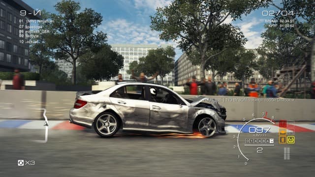 Сильные удары приводят не только к помятому корпусу. Портится подвеска, двигатель, руль встает вкривь, колеса начинают смотреть в разные стороны. Если на скорости въехать в ограждение, то результат может оказаться фатальным — с полным уничтожением автомобиля и провалом состязания. К счастью, перемотка времени сохранилась, чтобы исправлять неудачные моменты. Но если вы чувствуете себя достаточно уверенно, то лучше отключать помощников. Чем меньше поблажек, тем больше дают опыта по итогу заезда. Первым приходить вовсе не обязательно. Спонсора вполне устроит, к примеру, восьмое место.