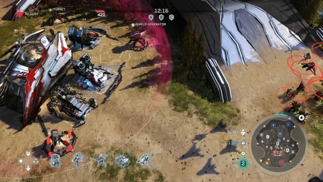 Механика Halo Wars 2 во многом идентична первой части, но есть отличия. Базу мы по-прежнему строим в специально обозначенных местах, и «подключить» к ней можно лишь определённое количество модулей и оборонительных турелей. На первых порах приходится делать мучительный выбор, что важнее: добыча ресурсов, бараки, заводы по производству наземной или воздушной техники. Спустя пару улучшений эта проблема отпадает, база расширяется достаточно, чтобы вместить всё желаемое.