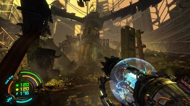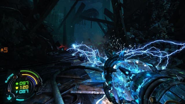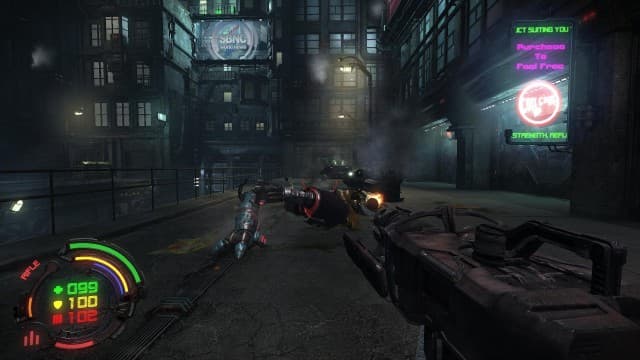Сохранилась занятная реализация вооружения. У протагониста всего две «пушки». Однако для каждой предусмотрено несколько режимов стрельбы, будь то ружье, автомат или ракетница. Такое решение, на первый взгляд, избавляет от хлопот по сбору амуниции. Но если израсходовать все патроны в одном режиме, то рискуешь оставить героя без половины арсенала. Оружие и определенные характеристики Флетчера улучшаются у специальных терминалов. Опыт выдают за уничтожение роботов и поиск секретов.