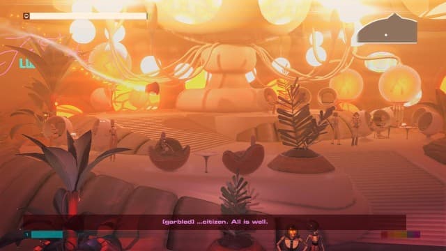 Впрочем, Headlander является неплохим приключением для тех, кто хочет насладиться слегка безумным миром. Герой попадает в декорации с показательно футуристическим оформлением, неоновыми вывесками и странными предметами искусства. Роботы-гуманоиды щеголяют модными прическами и вызывающими нарядами. Продвинутые технологии ретрофутуризма отличаются яркими кнопками, а данные записываются на здоровенные катушки бобинного типа. Но стоит свыкнуться с антуражем, как игра уже не вызывает столь позитивных эмоций.