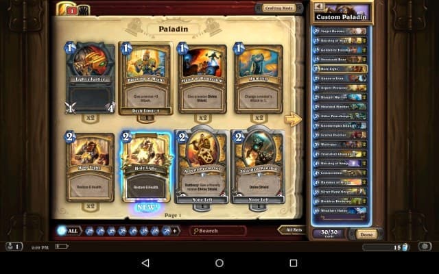 В-третьих, интерфейс переехал с компьютерной версии без изменений. К самому игровому процессу претензий нет. Выбирать карты, смотреть на их свойства и атаковать противника получается легко и комфортно: сложно промахнуться с такими-то целями. Однако интерфейс создания собственной колоды очень неудобен. Карты в колоде представлены в виде узких полосок, и на 7-дюймовом экране очень непросто точно выбрать одну из них, чтобы что-то поменять. На экранах большего размера будет проще, но ненамного. Все-таки палец — это не мышка.