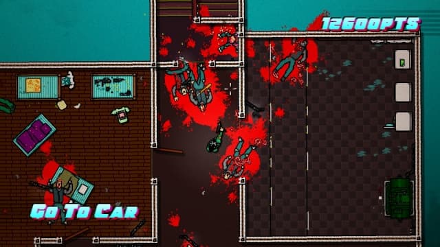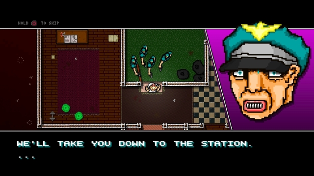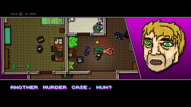 Первая часть была крутой. Такой же крутой, как боевики 90-х, где кровь рекой, враги на куски, мотивы смешны, а месть бодра. Правда, в Hotline Miami ни о какой мести речь не шла, поскольку за героя выступал маньяк, который просто принимал заказы по телефону и ехал по назначению убивать всех подряд, нацепив одну из звериных масок. Графика была на грани терпимости, но агрессивная, динамичная, напористая музыка брала свое. Под заводные ритмы протагонист врывался в помещение, убивал, умирал, начинал заново, снова и снова, по кругу. Сюжет присутствовал, но состыковать обрывочные куски психопатического бреда в цельную картину могли лишь очень въедливые поклонники.