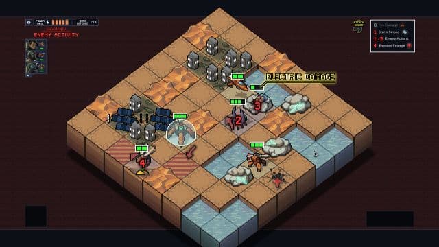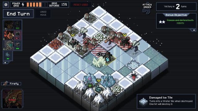 Каждый ход превращается в решение увлекательной головоломки, где ты пытаешься минимизировать ущерб, уничтожить максимальное количество врагов и заблокировать поступление новых. Поскольку насекомые лезут из-под земли, достаточно над местом прорыва разместить или своего бойца, или сдвинуть туда чужого. Многие виды техники позволяют не только наносить повреждения, но также отбрасывать или притягивать монстров, что помогает их также сбрасывать в пропасти или море.