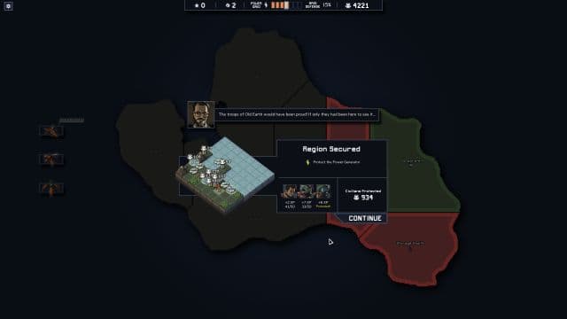 Необычно, но после поражения желание начать новую кампанию не пропадает, а усиливается. Все благодаря хорошо настроенной механике, когда интересно играть с первого уровня. Увлечённость подхлёстывается желанием открыть новых пилотов и мехов, прокачать их и попытаться добраться до нового острова, а то и пройти до победных титров.