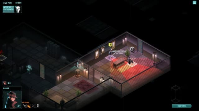По сути, Invisible Inc. — пошаговая тактическая стратегия. Персонажи по очереди передвигаются по локациям, разделенным на клетки, и используют очки действий с максимальной эффективностью. Но под контролем игрока оказываются шпионы. Они не решают проблемы в лоб, а должны работать скрытно. Герои смотрят в замочные скважины, прячутся за углами и предметами интерьера, чтобы избегать внимания патрульных. Оставаться незамеченными помогает искусственный интеллект. Он взламывает камеры наблюдения, определенные системы и некоторых охранных ботов, но на это тратится энергия.