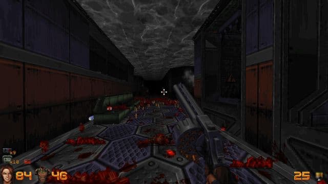Сражения представляют собой дикую смесь из попыток максимально эффективно использовать доступное оружие и особенности окружения, чтобы с угрозой разобраться и патронов потратить поменьше. Разбавляется это необходимостью помнить про быстрые сохранения. В Ion Fury иногда нереально быть готовым к внезапной угрозе. Уже на третьей (из четырёх) сложности Шелли может погибнуть раньше, чем успеваешь понять, что случилось. Для успешной расправы над монстром надо знать, откуда он выпрыгнет.