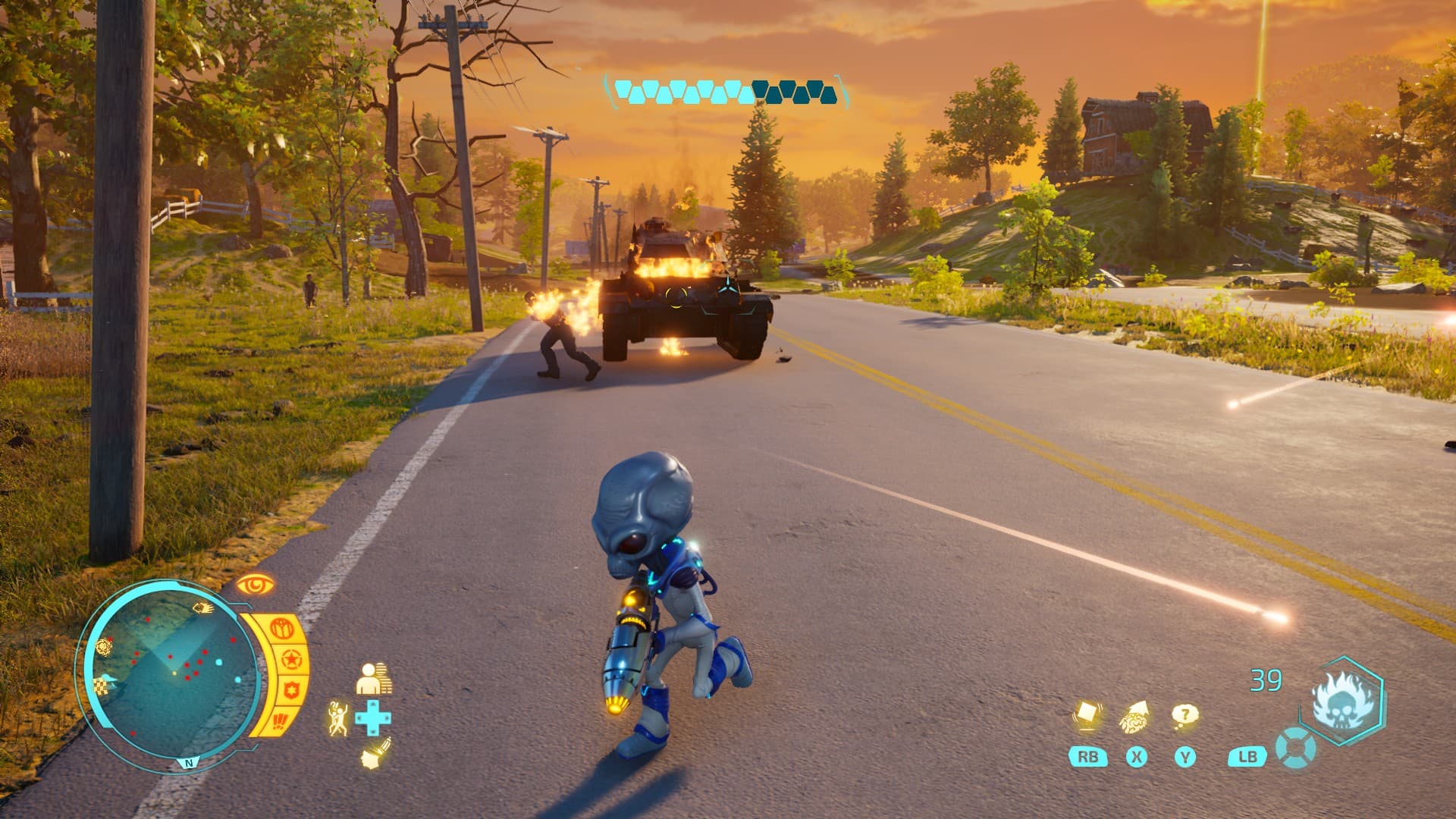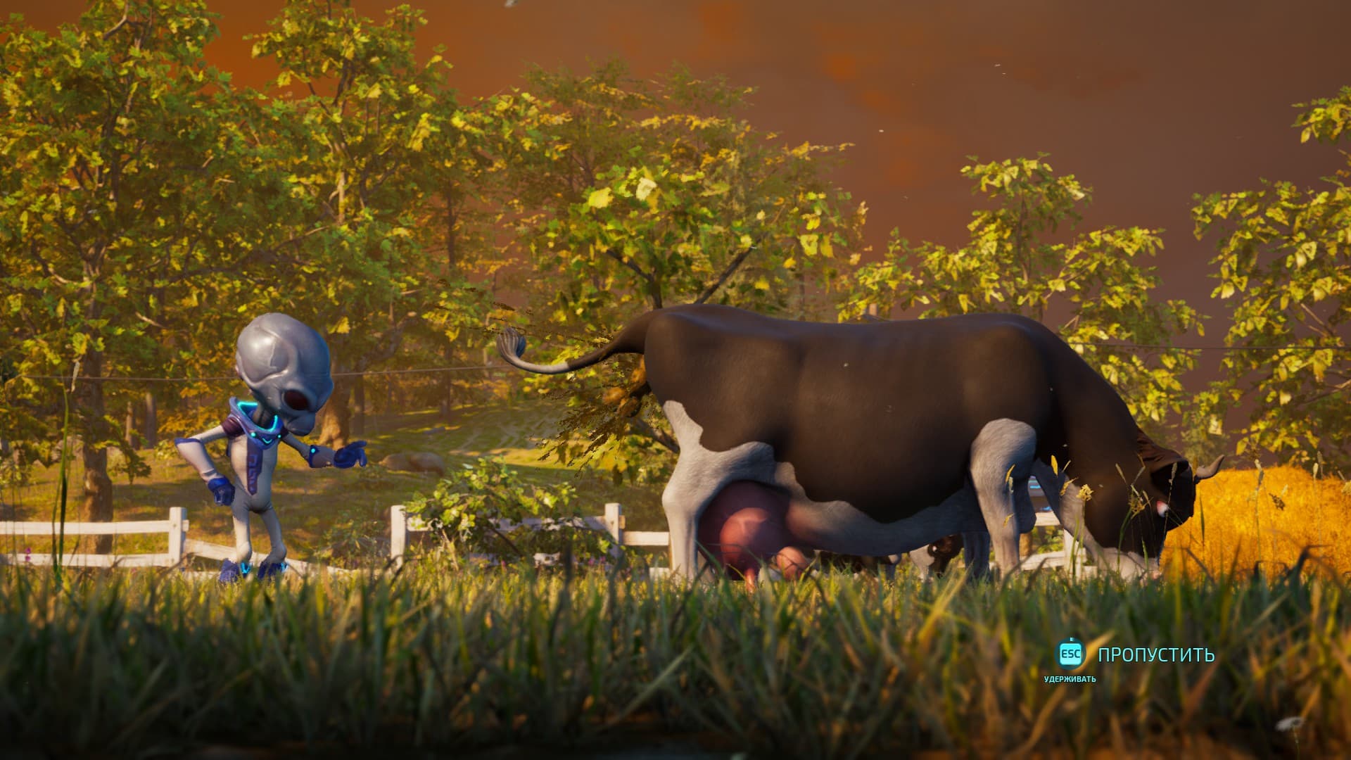 Игровой же процесс представляет собой уничтожение людей всеми доступными способами, и это чертовски весело. Нам в начале каждой миссии дают вводную информацию, логически обосновывают то или иное действие. Взять пленных для изучения и анального зондирования, украсть коров, переключить антенны домов на трансляцию пси-волн с материнского корабля для зомбирования, уничтожить учёного «Людей в чёрном» и много чего еще, но по итогу всё так или иначе выливается в уничтожение всех людей!