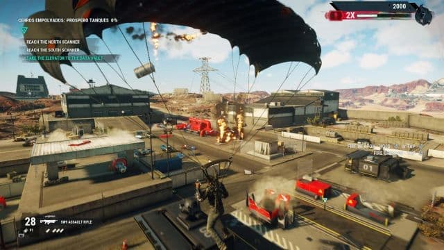 Знакомый крюк-кошка вернулся, а возможность стягивать предметы и, например, направлять бочку в стену или злодея, является лишь одним из приёмов. Рико научился прикреплять к объектам воздушные шары (местная версия фултонов) и миниатюрные реактивные двигатели. Поднимаешь в воздух автобус, а также изменяешь траекторию движения вражеского вертолёта или самолёта и сталкиваешь его с взрывоопасным резервуаром. Неприятели воспринимаются винтиком механизма, и от них перестаёшь требовать адекватного поведения.