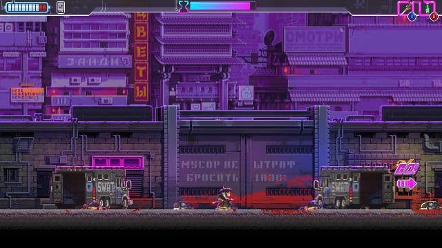 Katana Zero впечатляет многообразием условий сражений и выверенным балансом. В ходе приключения то запрещают трогать охранников, то кровавая баня разбавляется необходимостью избегать снайперских выстрелов, то без эффектных прыжков с задачей не справиться. В немногочисленных, к сожалению, битвах с боссами акробатика, замедление времени, разящие удары и уклонения сплетаются в тугой клубок. Заставляют за считанные секунды принимать единственно верное решение, иначе всё повторяешь заново. Благо драки не затянуты, включая подготовительный этап, и от провалов не устаёшь.