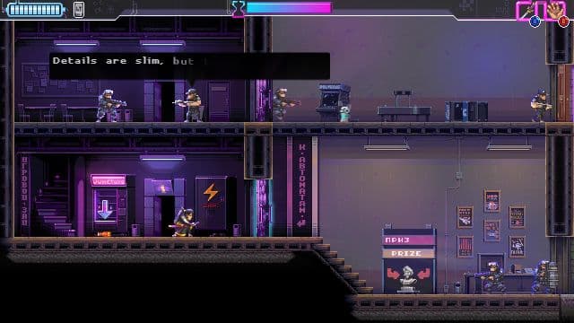 Столь неоднозначные эмоции игра вызывает потому, что история обрывается на полуслове, но при этом является одним из главных достоинств приключения наемного убийцы, прозванного Драконом. Да, Katana Zero смело можно считать сюжетным боевиком. Страдающий от амнезии герой проживает в мрачной антиутопии с налётом футуризма, мучается от ночных кошмаров, обсуждает сны с таинственным типом, который также выдаёт ему задания, и может поболтать даже со своими жертвами или девушкой в фойе отеля.