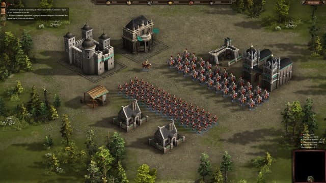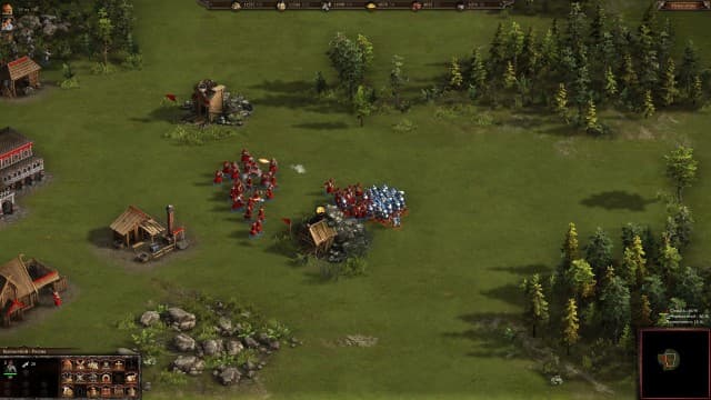 Для этого строим здания, добываем еду, дерево, железо, уголь и золотишко, улучшаем войска, заказываем солдат, объединяем их в отряды и отправляем в бой. Удручает, что всё это делается медленно, поэтому больше занимаешься простенькой экономикой, чем сражениями.