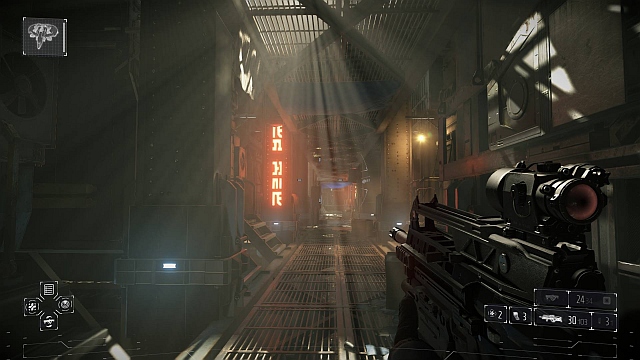 Ну не стоит в игру с тяжелым оперативником вставлять странноватые участки, где он должен прыгать по платформам. Ну не надо добавлять эпизоды долгих полетов в бездну, во время которых неловкое маневрирование между хаотично падающими обломками приводит к мгновенной смерти. Ну не делайте вы унылую стелс-миссию протяженностью в целую главу, когда единственными противниками становятся роботы, «ощупывающие» территорию своими сенсорами. Ошибся, умер, всё начинается заново. Далеко расставленные друг от друга контрольные точки тоже не добавляют энтузиазма.