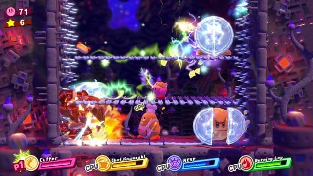 Спасение четырёх миров не воспринимается как пустая трата времени. Отсутствие сложностей становится неплохим стимулом для экспериментов. В Kirby Star Allies разрешено комбинировать умения героев. Совместные приёмы варьируются от стандартного усиления оружия огнём, молниями или льдом, чтобы активировать выключатели или замораживать водопады, до разрушительных атак, когда Кирби собирает товарищей в одной точке, а потом запускает их в свободный полёт. Эти возможности пригождаются для решения несложных задач. Например, необходимо поджечь фитиль, а потом оберегать его от воды.