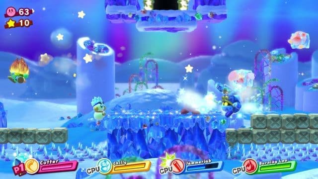 Игра радует и разнообразием ситуаций, а герои то оказываются на движущейся платформе, плавают под водой, ненадолго задерживаются на арене и избивают противников, то превращаются в огромное колесо и сметают всех на своём пути. Кроме того, Кирби и его спутники летают верхом на звезде и разносят препятствия на мелкие кусочки.