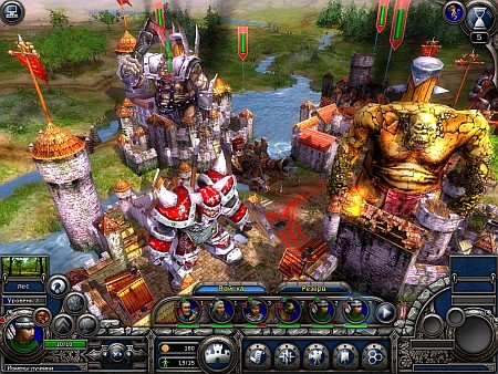 У орков характер армии более агрессивный, отлично подходящий для быстрого и мощного наступления, на острие которого, как два тяжелых танка, будут главные герои – Угрюм Хвать-Нога и Бесаргар. Разведчики на гиенах невероятно мобильны и эффективны в обходных маневрах. Всадники на быках не хуже рыцарей контролируют открытую местность. Гоблины рядом с уверенными командирами забывают про природную лень и отчаянно дерутся даже в глухих лесах и топких болотах, что превращает их в лучшие пехотные подразделения. Бешеные и панцирные орки кромсают в капусту любых противников, а медлительные тролли легко обороняют любой доверенный им участок. Военно-воздушные силы краснокожих немного уступают орлам и драконам эльфов, но эффективнее работают против наземных целей. Слабоваты и камлания шаманов по сравнению с убойными заклинаниями магов. Осадные орудия легко ломаются и замедляют продвижение орков, но их механическая мощь стоит нескольких ходов ожидания.
