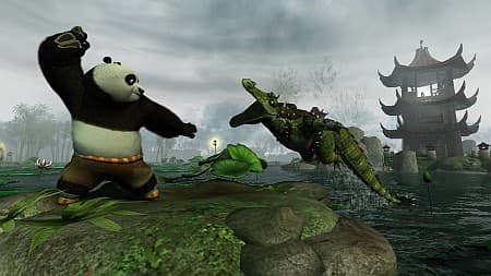 Из панды бойца сделать несложно, медведь охотно раздает удары всеми конечностями, обожает кувыркаться в ноги и совсем дуреет с шестом. В распоряжении игрока больше двух десятков приемов, разрушительная сила и невероятная скорость которых увеличивается за собранные золотые монетки. Богатый арсенал приемов практически не востребован – на битье окрестного зверья хватает двух-трех комбинаций. Акробатика – вялая, подстать главному герою, разве что мастер Шифу демонстрирует чудеса ловкости, порхая на трамплинах-облачках. Кстати, только учитель помогает своему ученику. Остальные персонажи неистовой пятерки выходят на сцену только в сюжетных роликах, где предлагают игроку одну старую забаву «махни рукой в правильную сторону и увидишь продолжение событий».