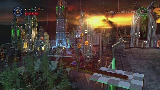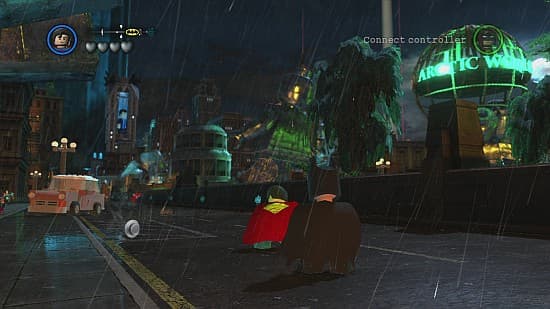 Другое изменение касается организации мира. Место уровня-хаба (с порталами на игровые локации) заняла внушительных размеров «песочница». Разделённый на три района Готэм-сити предоставляет свои улочки и достопримечательности для свободных поездок, полётов и исследования закоулков. Тут можно даже забраться на вершину небоскрёба и взглянуть на мегаполис с высоты птичьего полёта. Потом планировать с одной крыши на другую и выискивать запрятанные тайники. Или просто любоваться ночными видами и мельтешащими в панике горожанами. Ощущение свободы портит только неудобный указатель важных объектов и отсутствие мини-карты. Это вынуждает частенько заглядывать в меню, чтобы свериться с маршрутом. Сюжетная кампания уже не даёт возможности выбирать один из нескольких эпизодов и представляет собой линейную последовательность из полутора десятков заданий. Изначально в списке играбельных персонажей значатся лишь Бэтмен с его верным помощником. Впоследствии из-за кулис появляется Супермен и остальные члены «Лиги Справедливости». Злодеи и многие другие узнаваемые личности вселенных DC в LEGO Batman 2 обитают в необязательном разделе. Добавив пару новых штрихов, разработчики не стали ломать основу над остальным. Герои как много раз до этого бегают по уровням, уничтожают предметы с целью насобирать побольше заветных колечек, решают головоломки и избивают врагов. Продолжительных схваток в игре нет, сцены с возрождающимися неприятелями единичны.