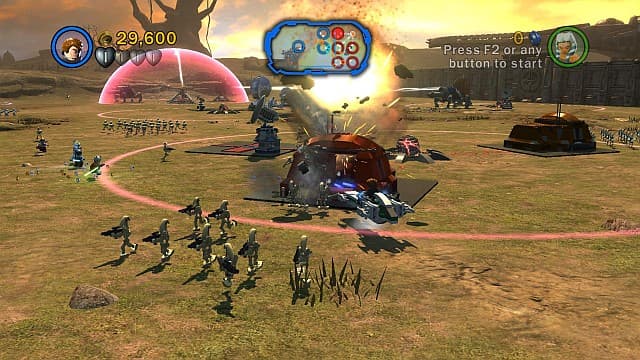 Третий тип миссий - сражения в открытом космосе. Тоже не без греха из-за странного управления крылатыми посудинами. Стоит слегка наклонить стик, и махина начинает нервно вертеться на месте, добиться точного контроля крайне затруднительно.Неудачными нововведениями список неприятностей не ограничивается. Оператор все еще любит выбирать неподходящие ракурсы. Головоломки, если их так можно назвать, решаются сами собой, простым перебором способностей героев. Зачастую вынуждают долго отбиваться от толп неприятелей, что при местной однокнопочной боевой системе не самое веселое времяпрепровождение. Зато в визуальной части авторы преуспели, доработали движок. По огромным полям бегают сотни бойцов, все вокруг взрывается, крейсеры разваливаются на части, озаряя небо вспышками. Джедаи не хуже своих прототипов прыгают в свалке сражений и отрезают врагам конечности. Некоторые сцены заставляют вовсе забыть о том, что это очередная часть того самого LEGO-серила, благодаря масштабной и зрелищной постановке событий.