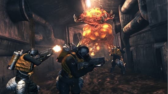 Дальше - больше. Некоторые моменты вызывают рычащие вопли: «Да какого хрена?!». Герои оснащены захватом-кошкой, при помощи которой забираются на многоэтажные конструкции. Но прицепиться разрешают не ко всем поверхностям. К каким - точно известно лишь авторам. Если ваш герой решил подлечиться (регенерация осталась в прошлом), совершить быстрый забег, куда-нибудь вскарабкаться, или даже бросить гранату, то предварительно стоит внимательно оглядеться. Любое мелкое ранение прервет действие. Зачастую бойцов оставляют один на один с непредвиденными обстоятельствами без каких бы то ни было указаний. Не успели понять и воплотить то, что хотели от вас разработчики - начинайте с самого началаИграть вместе с живыми людьми или с компьютерными болванчиками - решать вам. С одной стороны, в приключении есть ситуации, требующие слаженного командного взаимодействия. То необходимо удерживать контроль над двумя точками, которые расположены в разных концах карты. То приходится распределять обязанности, для устранения босса. Кто-то подносит снаряды к огромной пушке, кто-то работает наводчиком, кто-то орудует вспомогательной турелью. Однако «жизней» даже на самом лёгком уровне можно накопить в лучшем случае около пятнадцати штук. На четверых этого количества вряд ли хватит (особенно при первом знакомстве с картой). С другой стороны, в одиночку справиться с отдельными участками крайне затруднительно. Соратники, находящиеся во власти искусственного интеллекта, способны лишь бесцельно слоняться по округе и изредка отрывать огонь по неприятелям. Получается странная картина. Успех операции зависит не столько от того, как хорошо действуют главные герои, сколько от последовательности случайных величин. Просчитать, среагировать на отдельные выверты нереально, сделать что-то для спасения своей шкуры в последнюю секунду невозможно. Поэтому игроки банально боятся проявлять инициативу. Квартет мазохистов-неврастеников.