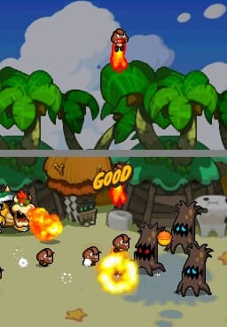 Например, в одиночку штурмовать неприступную крепость или разломать робота. В такие минуты Боузер сам превращается в колосса. Разъяренный и накачанный умелыми итальянцами король вырастает до размеров замка, Nintendo DS переворачивается набок, а классические кнопки уступают место стилусу и микрофону. Дуем – струю огня выпускаем. Резко двигаем стилусом – удары наносим. Цирк, да и только.