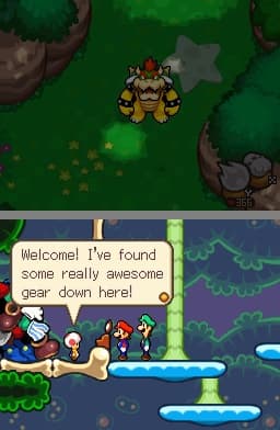 Внутри гигантской черепахи у Марио и Луиджи только один путь – на свободу. По дороге через желудок, кишечник и легкие, с заходом в глубокий тыл к вечному противнику и посещением других важных для нормального функционирования организма мест. Прыгает парочка по платформам, плавает по артериям, ныряет без аквалангов в воду, развлекается в мини-играх, шутки шутит и не стесняется иной раз укусить мягкой плоти или пнуть пару нервных окончаний. А что? Боузер сам виноват.Веселой прогулке по утробе заклятого врага мешают только робкие представители иммунитета и наглые паразиты, чье вольготное существование нарушило появление двух водопроводчиков. Драки итальянцев с неприятелями похожи на обмен любезностями в традициях японских ролевых игр, но требуют весьма активного участия и своевременного нажатия кнопок. Из пушки выстрелить, чужую атаку молотом отбить или перепрыгнуть особо наглого противника – это все в духе Марио и Луиджи. Боузер тоже на месте не стоит. У злодея неожиданно появились проблемы посерьезней, чем несварение из-за блюд итальянской кухни. Конкуренты захватили любимый летающий замок, часть верных слуг загипнотизировали простенькими фокусами, а те, кто посмышленее, оказались под замком. Кулаки монарха от обиды чешутся, огонь ярости обжигает горло – Боузера распирает от ненависти к вероломному противнику!Забудьте об утомительной тренировке бойцов и монотонном наборе опыта для достижения следующего уровня – с троицей весело и интересно. Даже изучение новых умений и разброс характеристик оформлены в виде мини-игр. Постоянно меняется всё: от героев и способов управления до игровой механики и точки обзора. Перемещаемся, прыгаем и переключаем рычаги, как в классическом двумерном платформере. В боевом режиме обмениваемся ударами и применяем спецприемы. В мини-играх используем стилус и микрофон.