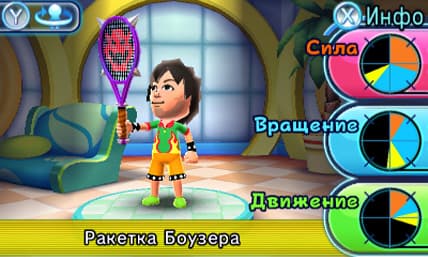 Кроме жителей Грибного королевства в теннис может сыграть и ваш Mii-аватар. За победы выдают деньги, а в магазине расширяется ассортимент кроссовок, ракеток и прочих принадлежностей. Причем каждый предмет экипировки изменяет характеристики Mii.