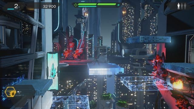 Студия Housemarque успешно развила механику боевика с перемещением в двух плоскостях и приправила убийства врагов и прыжки по платформам своеобразными идеями. Зачистка футуристического города от обезумивших машин становится интереснее благодаря наличию у наёмницы Авалон Дэрроу определённых приёмов.