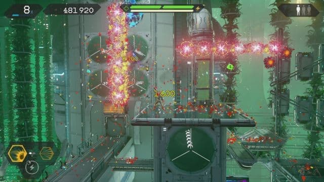 Захватывающие перестрелки и отлично проработанные отрезки, посвящённые акробатике, сменяются затишьем. К сожалению, помимо уместных передышек встречаются и примитивные испытания. Бестолковый наполнитель нельзя игнорировать, ведь игра не в последнюю очередь рассчитана на повторное прохождение уровней с целью набить побольше очков. Желательно было бы убрать отступления, как студия Housemarque и поступила в своём же проекте Nex Machina.