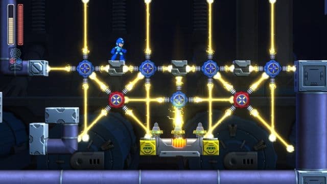 А вот традиционная структура кампании едва ли облагораживает игру. Проходить восемь стартовых уровней разрешено в любом порядке, отчего можно сходу столкнуться с неприятностями. С другой стороны, после победы над боссами Мегамену выдают новое оружие, что упрощают задачу в отдельных случаях. Например, при наличии ледяной «пушки» огненный робот не представляет угрозы, а умение совершать в воздухе рывок и призывать летающую собаку-робота делает определённые испытания легче. Ещё за местную валюту в магазине приобретаются аптечки, дополнительные жизни и апгрейды, которые, в частности, повышают эффективность замедления времени.