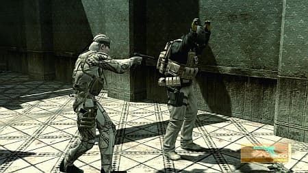 Главным постулатом MGS4 выступает принцип No Place to Hide - «негде спрятаться». В шпионских боевиках тени обычно выступают спасительными укрытиями, где можно спокойно отсидеться и переждать минуты волнения. Здесь же — нет. Действовать всегда (ну, почти) приходится днем, да еще на поле боя, где войска PMC выясняют отношения с повстанцами. Ни те, ни другие не являются нашими союзниками. Обе стороны можно беспрепятственно убивать/оглушать, но силы сопротивления элементарно могут стать друзьями — если показать им свою неприязнь к PMC.