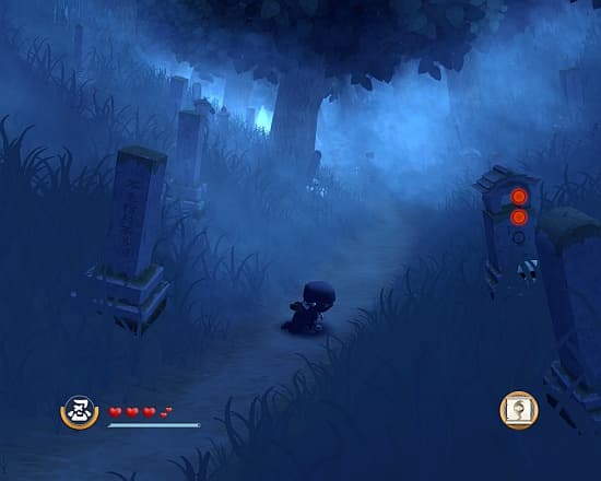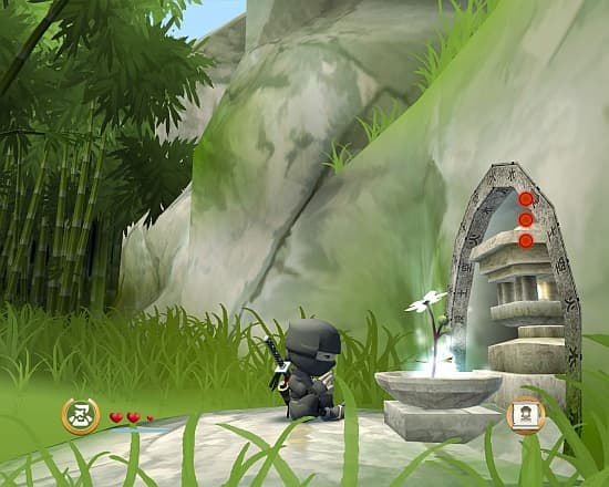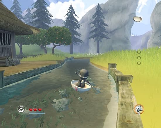 Простое чередование основной и вспомогательной атаки поможет вам раскидать 75% вражеского контингента. Редким здоровякам Футо вбивает в голову правила поведения с ниндзя вместе с ошметками шлема, темные монахи давятся собственными же зарядами, легкую проблему представляют собой копейщики, но и те грустно складываются от спецприема Хиро: выбрать нескольких несчастных и мгновенно уничтожить их. А поскольку насилие – это плохо, то враги наши не умирают, а с громким хлопком лопаются и превращаются в несколько растерянного лисенка (бурундука, кабанчика или ещё чего покрупнее). Живо вспоминается Соник с SEGA MegaDrive и зловещие эксперименты доктора Роботника по запихиванию бедных зверюшек в стальных монстров. Малыши носятся вокруг нас и, в конце концов, куда-нибудь убегают. Но в них и в праздно топчущих траву животных Хиро может перенести свой дух! Никакой особой пользы в этом нет. Разве что, представители фауны отменно чувствуют, где произрастают нужные нам растения, да некоторые – вроде панды – способны раскидать небольшой отряд злых самураев. Наши герои бегают по стенам, болтаются на парапетах и скачут не хуже Рю Хаябусы, взбираясь прыжками по каменному колодцу. Мы умеем очень быстро носиться, балансировать на канатах и красться под носом у переругивающихся охранников. Поверьте, скрываться в тени дуба, когда мимо тебя крадутся пятеро вражеских шиноби, очень весело.Акварель, которой рисовали местные пейзажи, хотелось бы видеть во многих других проектах. Даже Wolfenstein она бы не помешала. Яркие тона, легкая дымка на горизонте, покачивающиеся на ветру деревья и легкая рябь на поверхности озера. Поле с одуванчиками, рисовые поля, переходящие в неглубокое озеро, действительно жуткое кладбище в мертвенном тумане. На этом движке хоть сейчас можно ваять MMORPG или ещё пяток частей приключений малышей-ниндзя. И при этом уровни бывают просто огромные! Графика только кажется простой и непритязательной, местами нагло вылезают пиксели, но будьте уверены – во время прохождения вы не раз восхищенно застынете и кинетесь искать на книжной полке томик Мацуо Басё. Даже если его у вас там отродясь не было.
