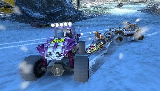 Правда, на этом хорошие новости для поклонников франчайза заканчиваются. В портативной версии пришлось значительно порезать графику, отказаться от повреждений автомобилей и упростить физическую модель, тем самым нивелировав разницу в проходимости многих классов. До чего дошло: квадроциклы уже не вязнут в грязи, а новинка – снегоходы – прекрасно скользят лыжами по голой земле! Нет упругих растений и разрушаемых препятствий. На льду и на снегу машины ведут себя одинаково. Задавить кого-то проблематично – мотоциклисты упругими мячиками выныривают из-под колес.В общем, первые несколько кругов проходят с недоуменно поднятыми бровями. Начальные заезды лишены какого-то сопротивления со стороны противников, победы дают легко, так и подмывает положить на полку PSP и засунуть в PS3 диск с Pacific Rift… Вместо чашечки крепкого экспрессо подсунули растворимую бурду, ироды.Впрочем, не сразу, но впечатления выправляются. После выхода на второй-третий круг чемпионата (всего в игре имеется восемь карьерных витков – до 20-ти заездов в каждом) враги заметно матереют, и к ним начинают просыпаться злобливые чувства: «Чего это они такие ловкие, а я криворукий, не могу в поворот вписаться, обязательно в пропасть улетаю-у-у-у…».Несмотря на многочисленные упрощения, игра не стала простой. Она все также требует предельной концентрации и превосходного знания трасс. А ведь противник может еще разрушить ледяной мост перед носом или спустить на голову лавину! Реву двигателей аккомпанирует драйвовая альтернативщина с The Prodigy, Radiohead и The Chemical Brothers во главе. Просыпается неспортивный азарт, становится весело и интересно. Тем более, разработчики не поленились удовлетворить страсть к коллекционированию всякой дребедени, даже трофеи сюда всунули, чтобы стимулировать людей усерднее и дольше гонять по заснеженным дорогам. Плюс, открываются новые модели гонщиков и медиа-материалы в специальном разделе. Есть, за что бороться.