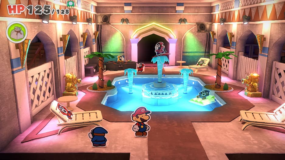 The Origami King не обвинишь в засилье однотипных битв, но игра лучше бы себя чувствовала с меньшим количеством бумажного насилия. В перерывах между отличными схватками с боссами приключение удивляет яркими событиями. Марио пробирается по захваченному врагами парку аттракционов в японском стиле, становится героем театрализованного шоу, окунается в атмосферу роскошного отеля, бороздит морские просторы на корабле и мчится на плоту по полноводной реке. Кампания развлекает обстановкой комедийного хоррора на заброшенном круизном лайнере, а потом невольно улыбаешься, собирая тусовку тоадов для дискотеки.