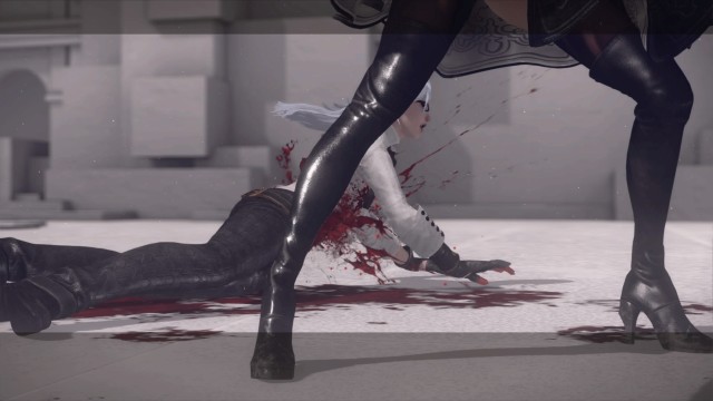 Игра начинается с очередного рейда, причём высадка десанта на Землю провалилась. Выжить удаётся только девушке-андроиду 2B в легкомысленном наряде секси-горничной. И это по понятным причинам является одной из самых выразительных особенностей Nier: Automata (ещё интереснее смотреть на косплей по мотивам и эротические рисунки поклонников). Кстати, в каждом андроиде есть функция самоуничтожения, и если взорвать 2B, то её юбочка разлетится в клочья.