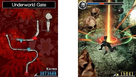 Любители фокусов массового поражения обнаружат в запасах Рю семь заклинаний. Огненный шарик вежливо следует за стилусом, поджаривая несчастных бесов. Глыбы льда разбиваются о черепушки врагов, а лучи тёмной энергии настигают несчастных прямиком с небес. Убежать от колдовского возмездия не так-то просто – слишком уж легко его вызывать. Заполняем шкалу Ninpo, рисуем выбранный иероглиф – и для нечисти в пределах экрана наступает миниатюрный Судный День. Или же Рю восстанавливает утраченное здоровье, представ перед опешившими бесами свежим и готовым убивать.